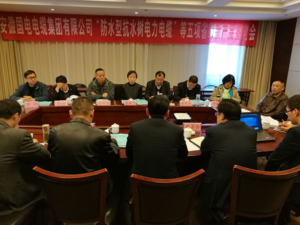 2016年11月05日,集团公司在合肥八一宾馆召开防水型抗水树电缆等五项省级新产品鉴定评审会,省经信委徐处长、周处长等领导莅临现场出席本次鉴定会。会上由多所国内一流大学教授和知名电缆集团的总工组成的专
